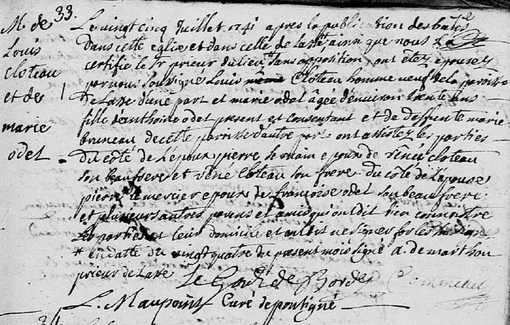 Mariage : 25 juillet 1741 à Pontigné 49150