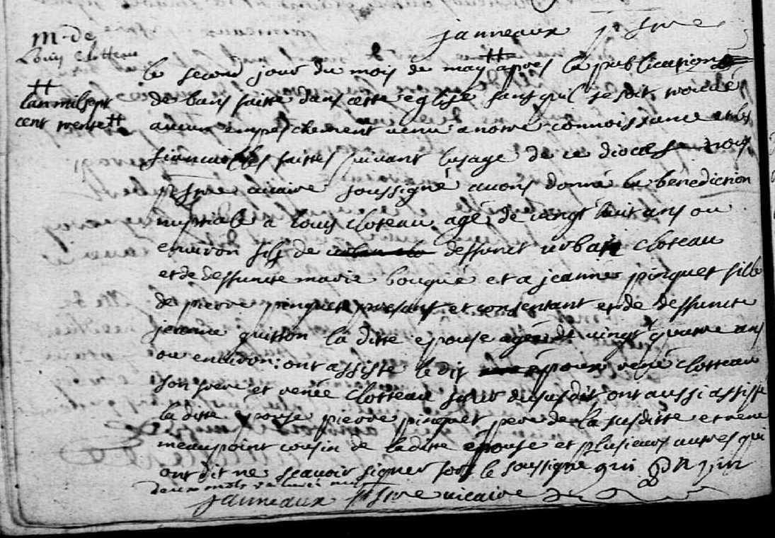 CLOTEAUX Louys né entre 1620 et 1645 Lohéac 35 ! (pourrait-être un fils)