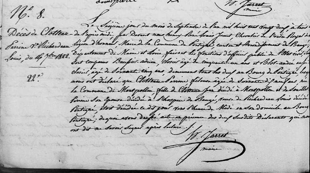 Décès : 16 septembre 1822 à Pontigné 49150 Bourg