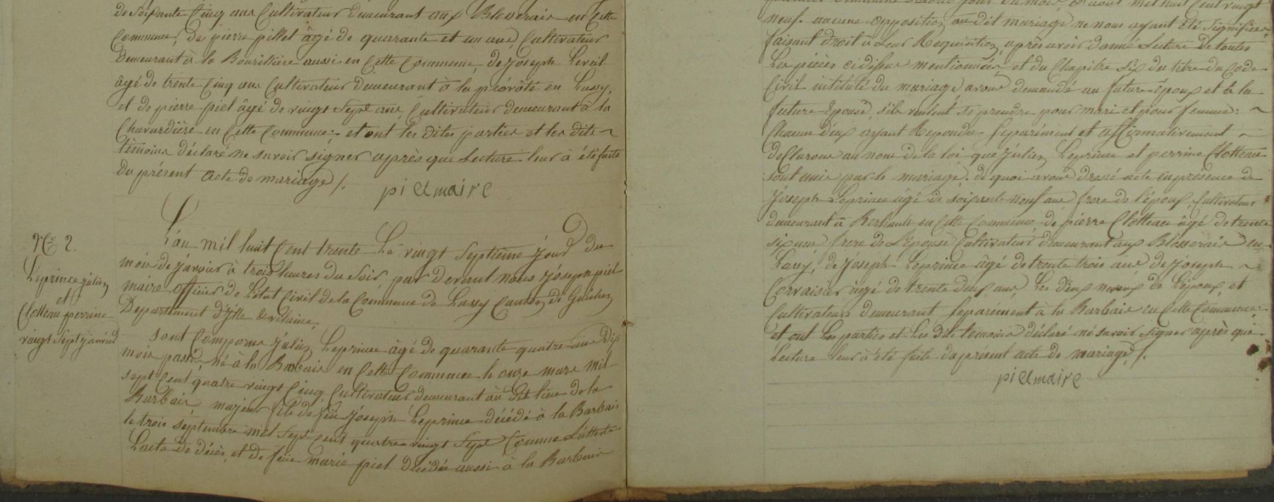 Mariage : 27 janvier 1830 à Lassy 35580