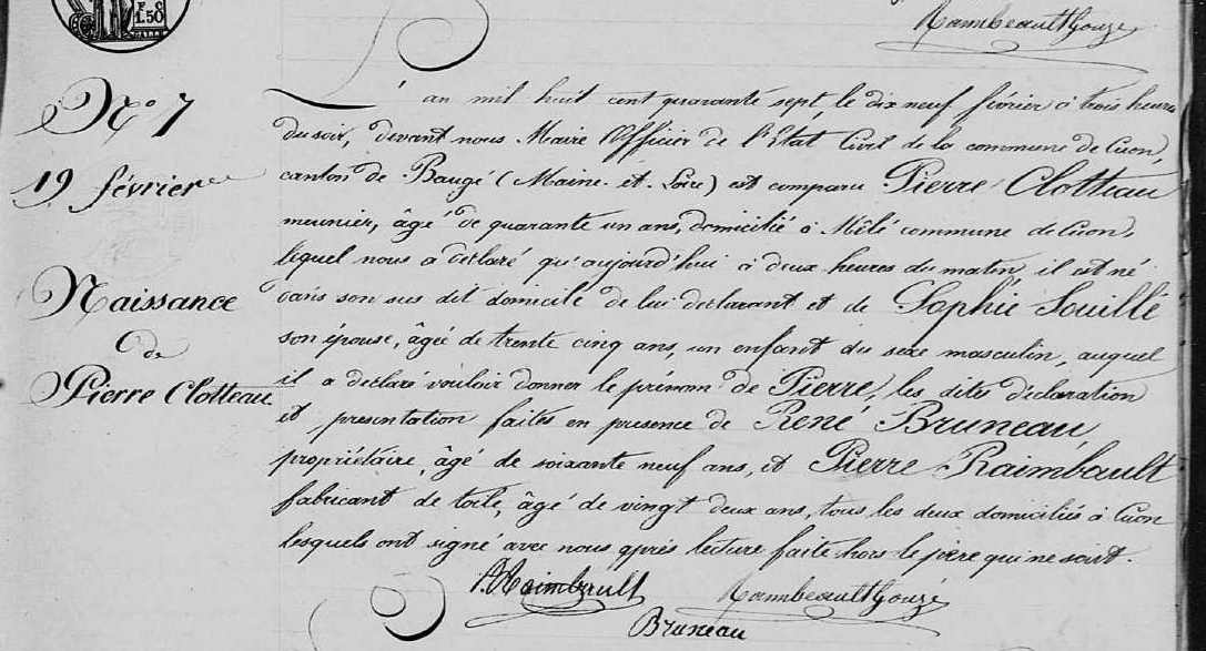Naissance : 19 février 1847 à Cuon 49150