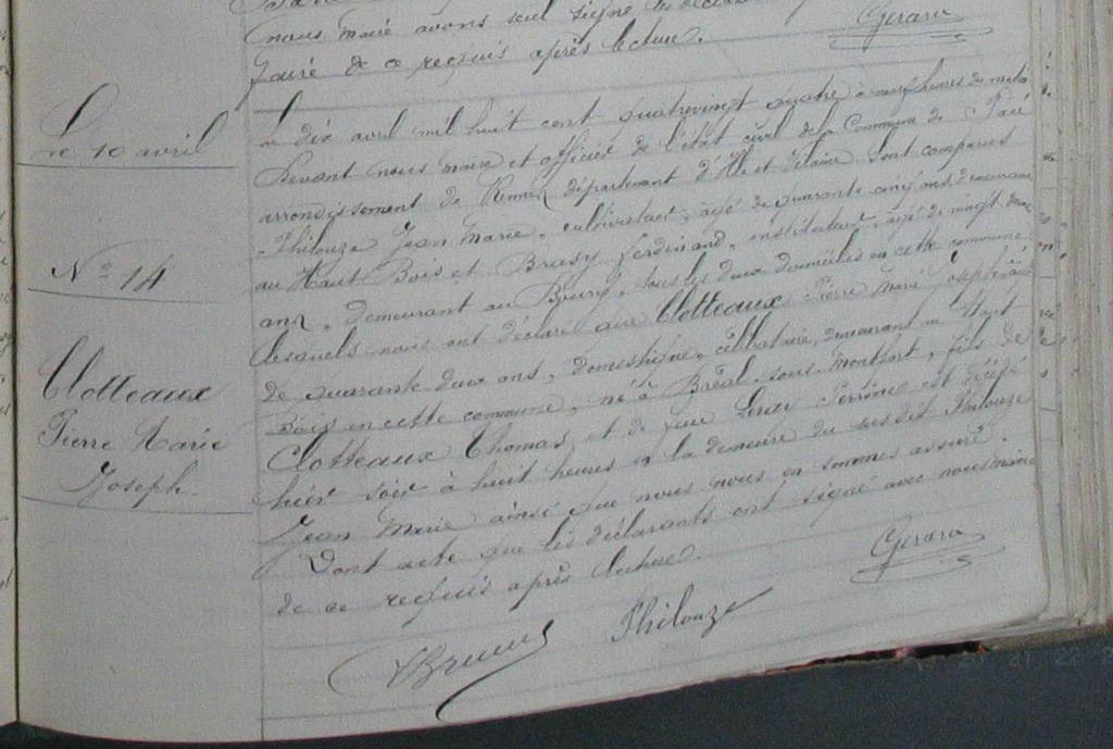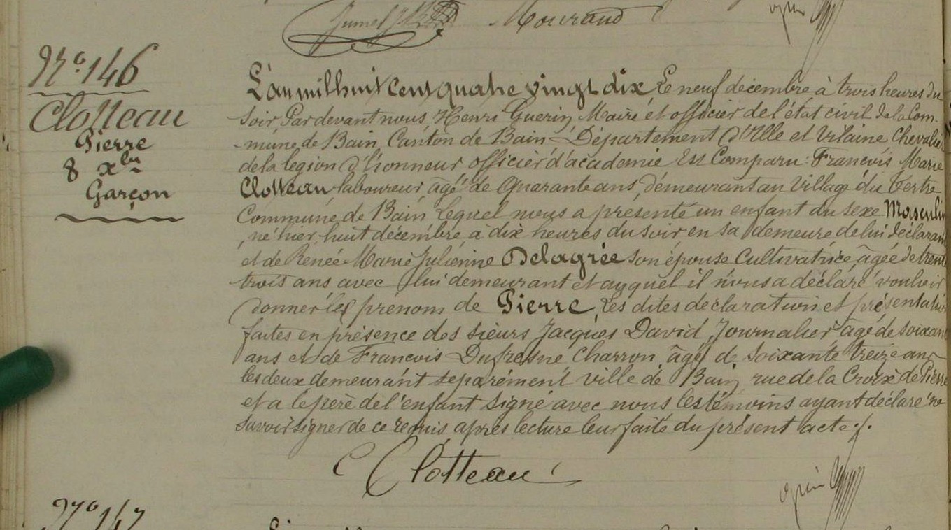 Père : CLOTTEAU Pierre ( 1806 - > 1876 )