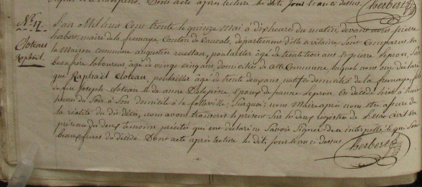 Décès : 15 mai 1830 à La Fresnais 35111