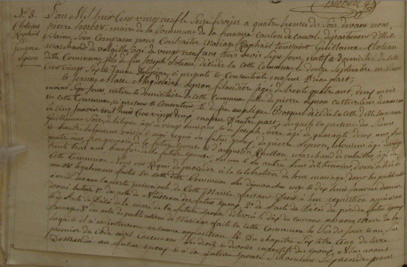 Mariage : 16 février 1829 à La Fresnais 35111