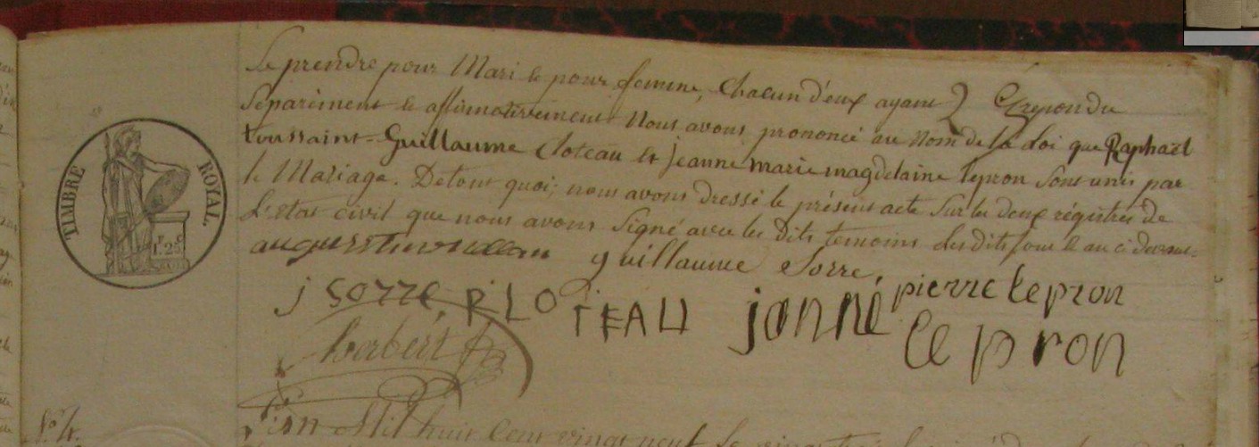 Union : LEPRON Jeanne Marie Magdelaine ( ~ 1794 - > 1830 )