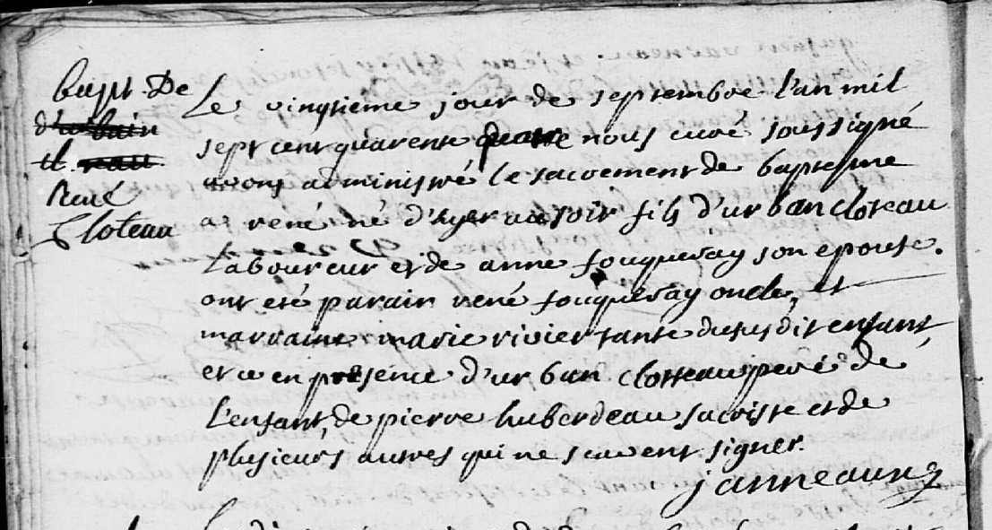 Père : CLOTTEAU Urbain ( < 1680 - <> 1731 & 1733 )