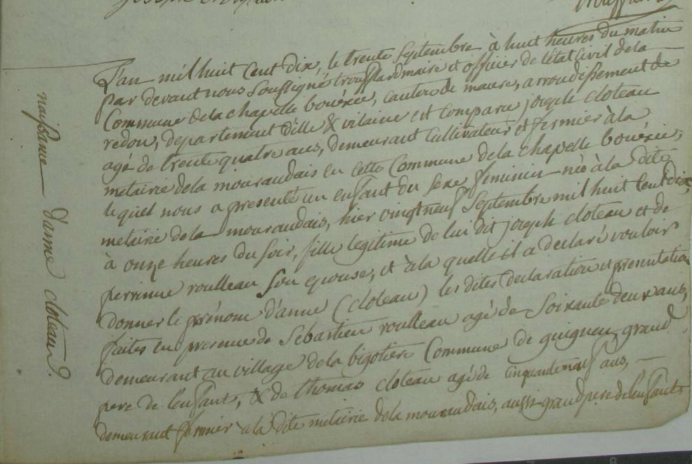 Père : CLOTEAUX Jean ( ~ 1741 - 1804 )