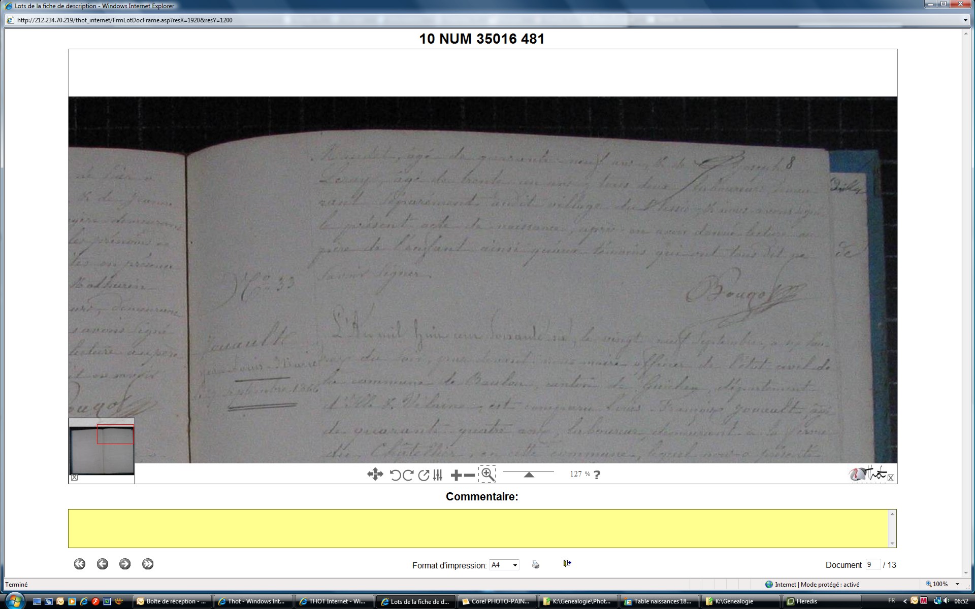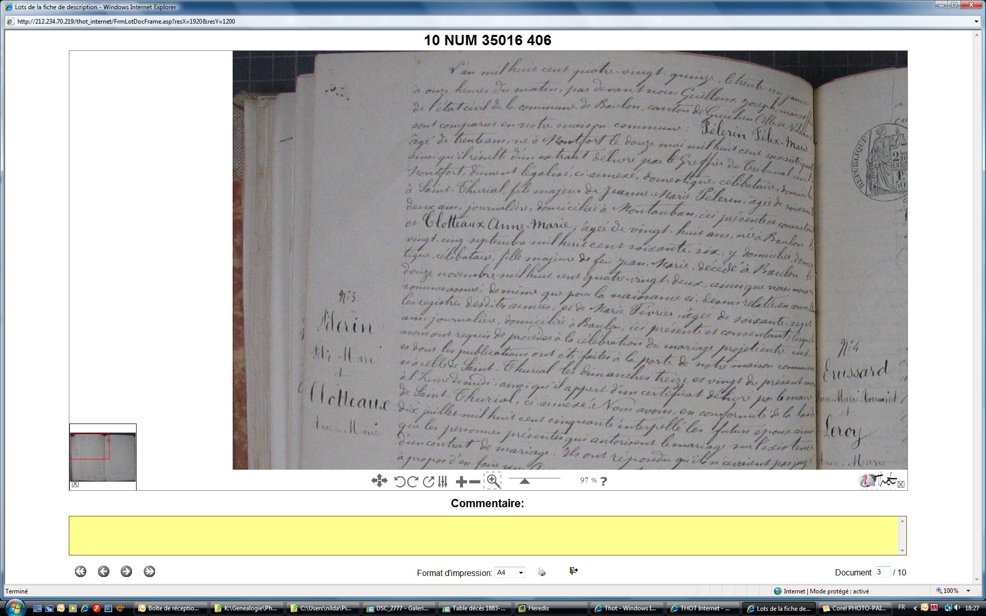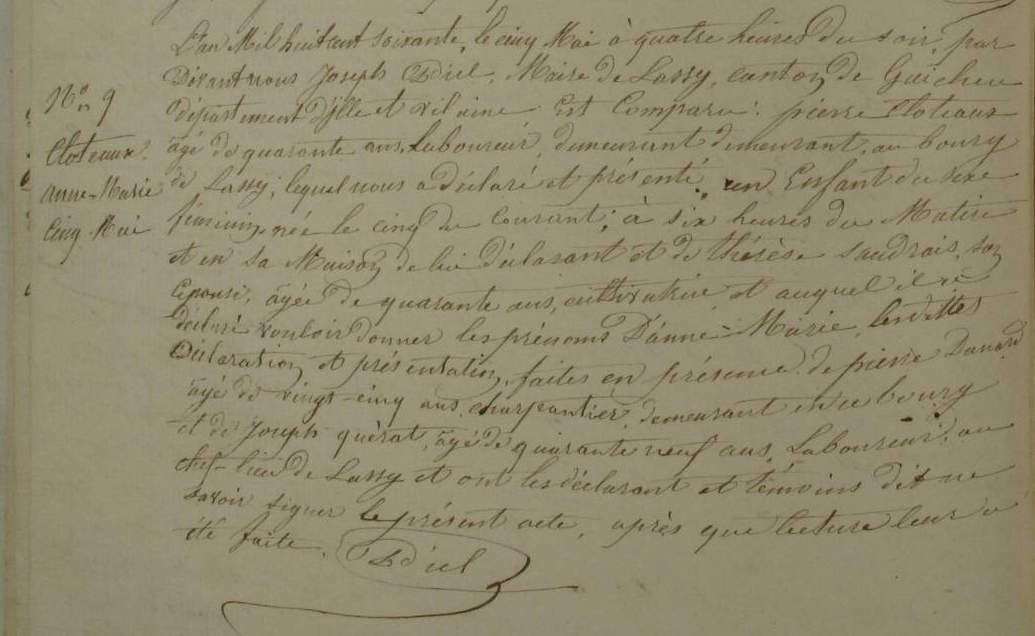 Nom et prénom de la marraine Cloteau Anne