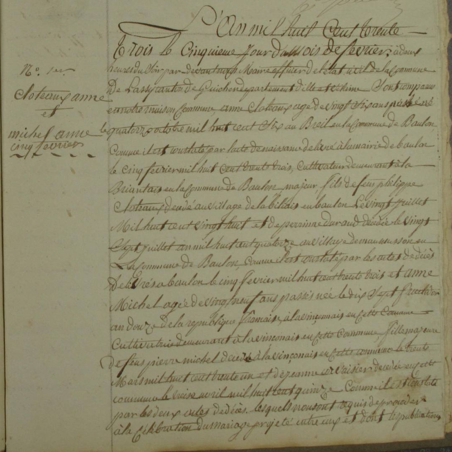 Mariage : 5 février 1833 à Lassy 35580