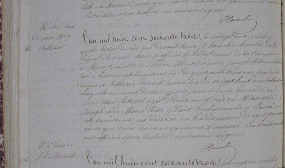 Décès : 22 octobre 1863 à Maxent 35380