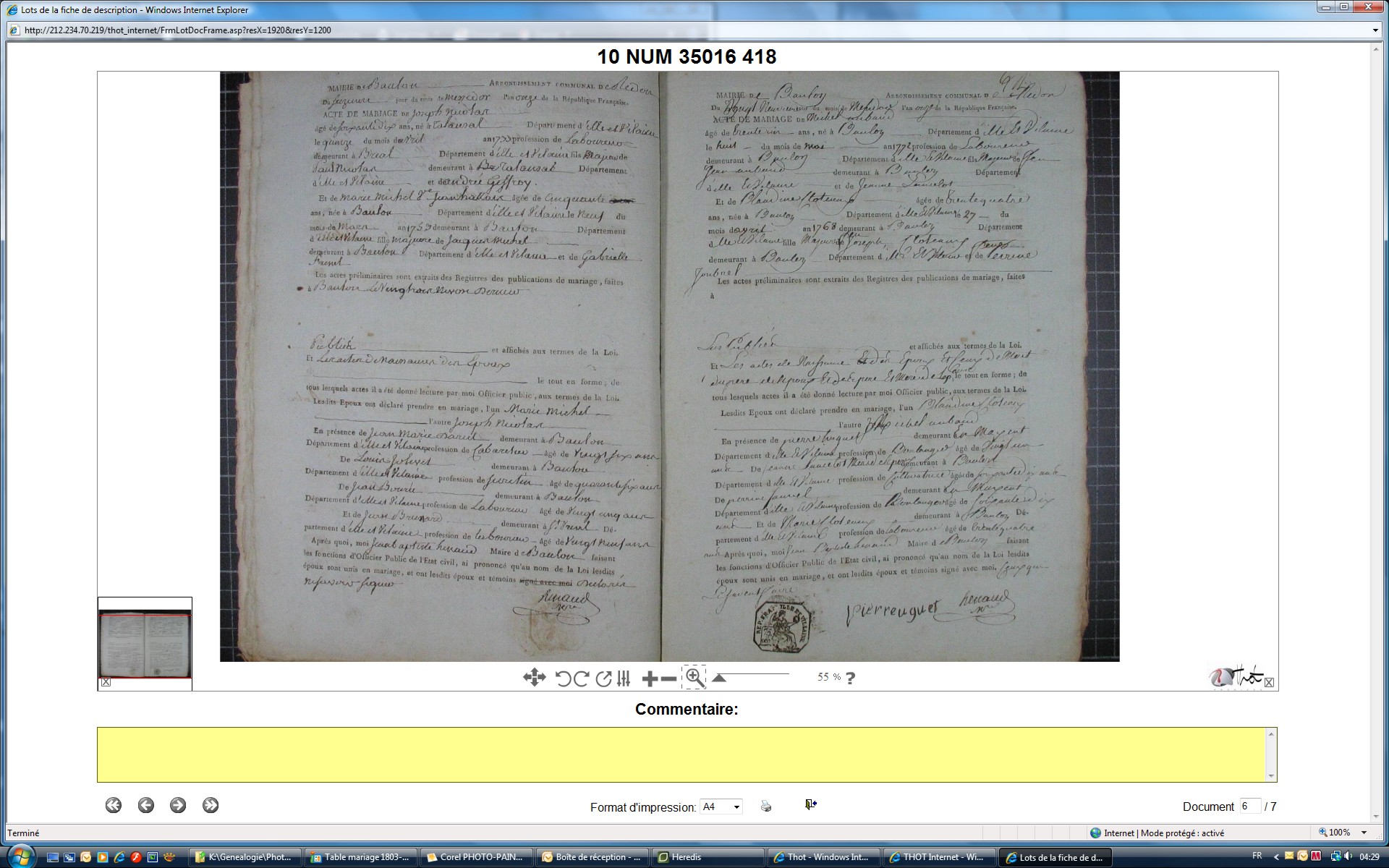 Mariage : 29 messidor an XI à Baulon 35580