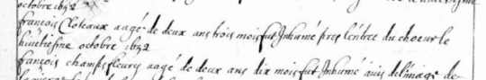 calculé Juillet 1650 correspond à la naissance de François enfant Cloteau X Porteu