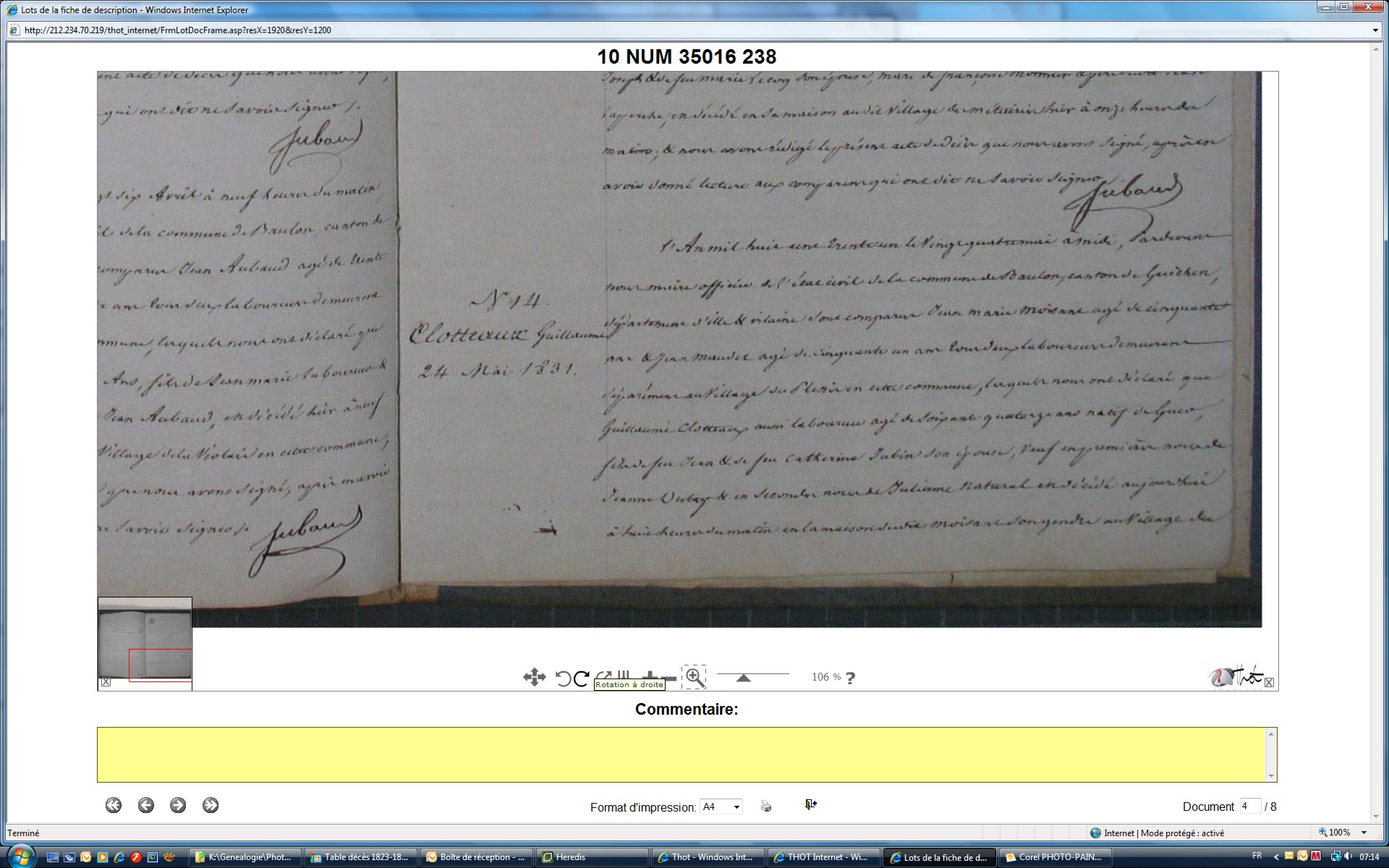 CLOTTAUX ou CLOTEAU sur actes de mariage ou CLOTEAUXDécès : 24 mai 1831 à Baulon 35580