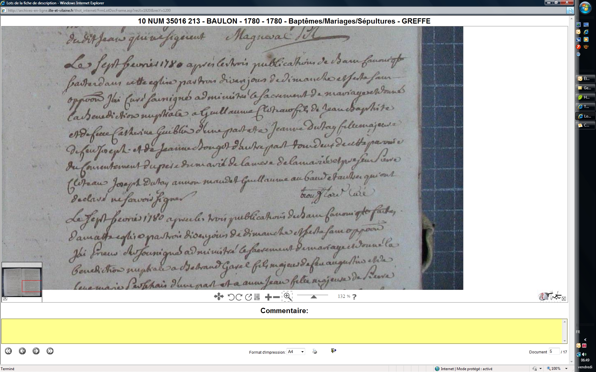 Mariage : 7 février 1780 à Baulon 35580