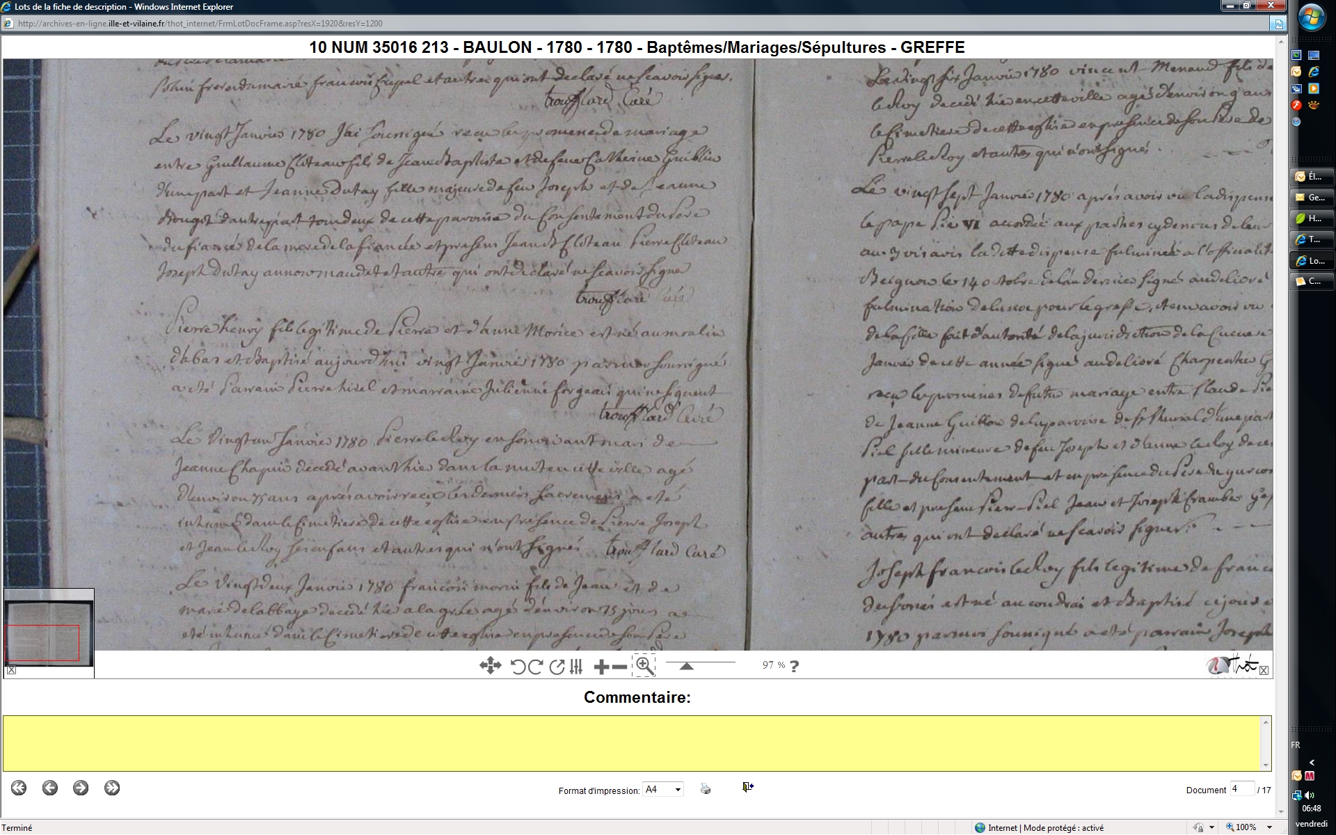 Promesse de mariage : 20 janvier 1780 à Baulon 35580