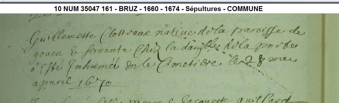 Naissance : avant 1658 à Goven 35580 Décès : 28 avril 1670 à Bruz 35170