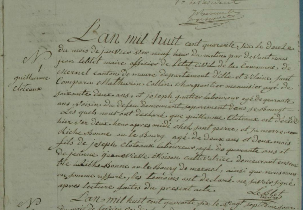 Décès : 11 janvier 1846 à Mernel 35330