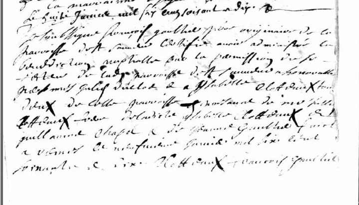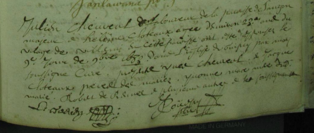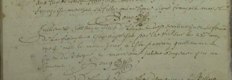 Nom et prénom de la marraine Clotteaux GuillemetteDécès : après 1690