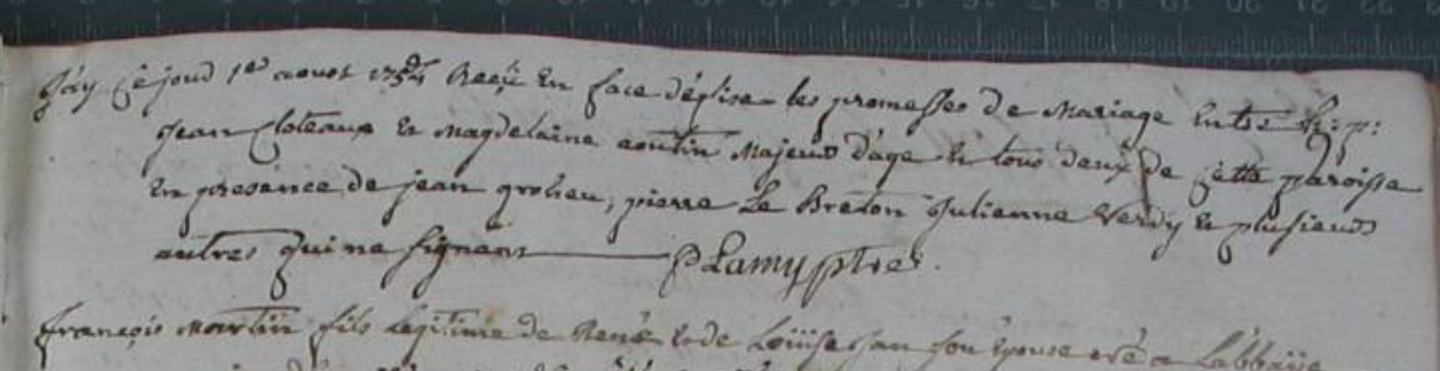 Mariage : 24 septembre 1700 à Guipry 35480
