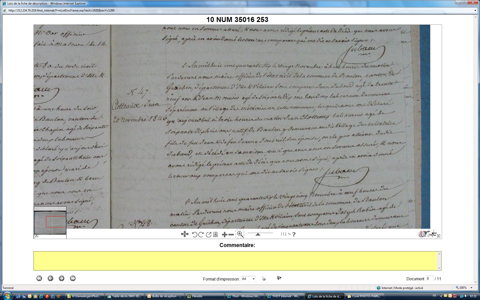 Notes complémentaires: projet de liquidation pour les différentes fournitures faites aux Prussiens (20 officiers, 620 soldats et domestiques, 67 chevaux)Décès : 28 décembre 1815 à Guignen 35580 Biffoué