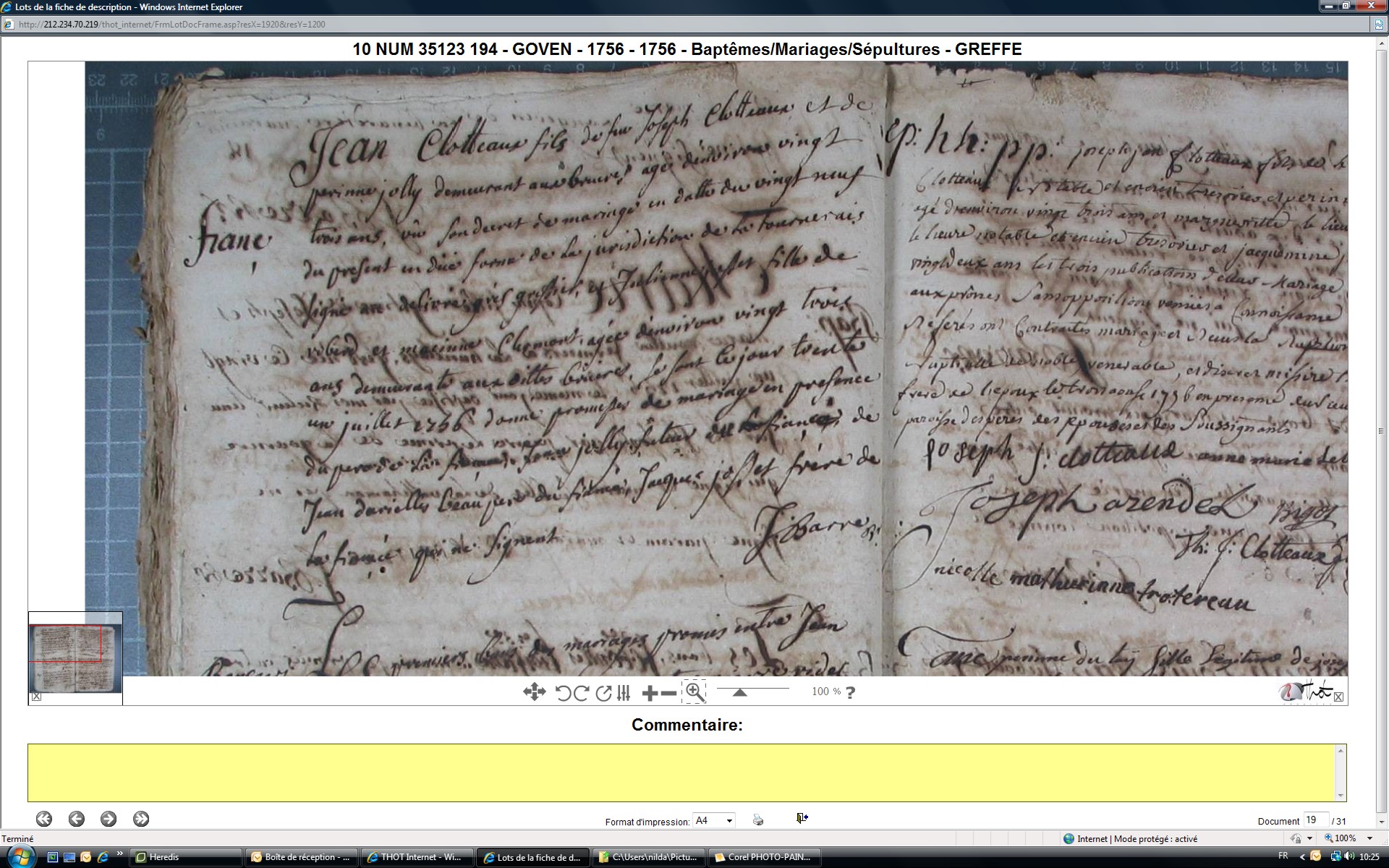 Père : CLOTEAUX Joseph ( 1719 - <> 1775 & 1778 )
