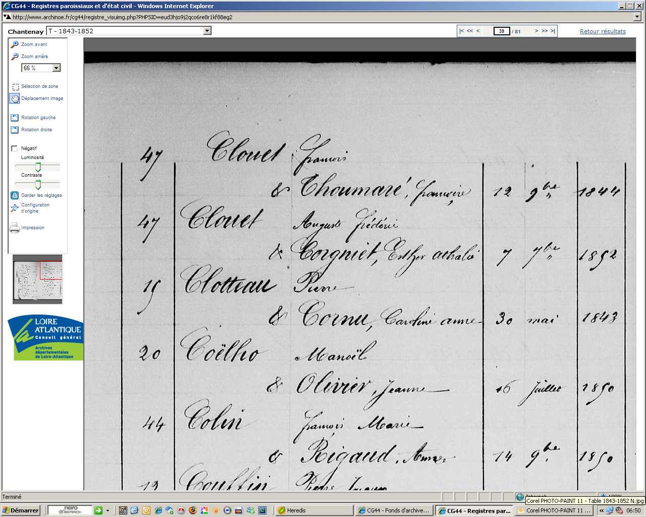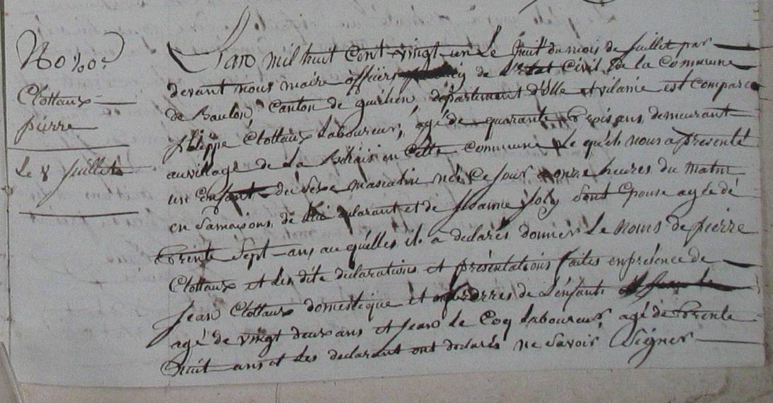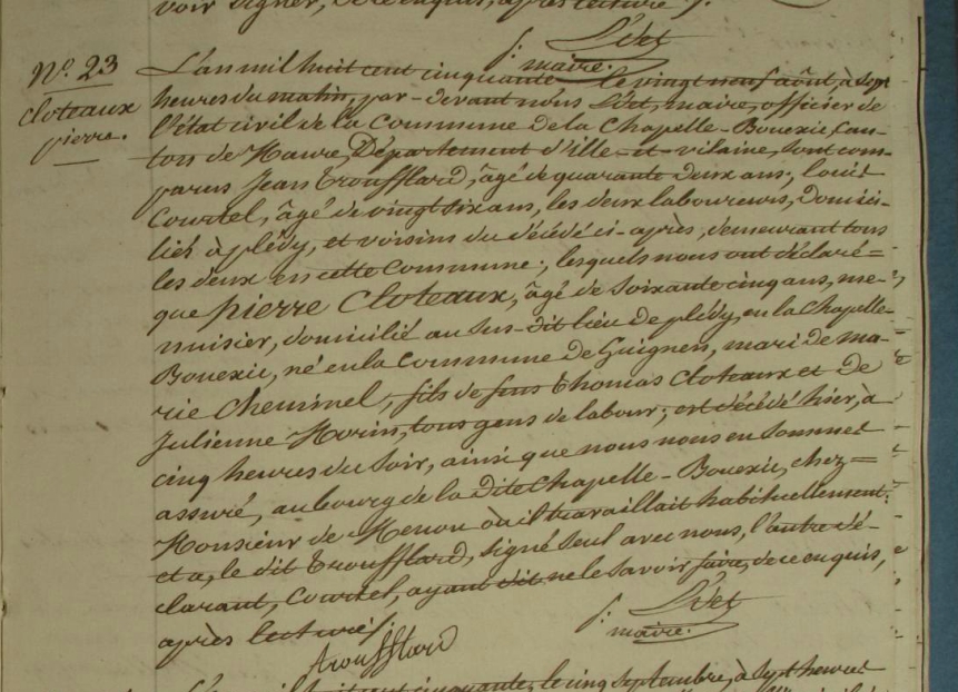 temoin mariage: Pierre CLOTTEAUX (1806-), lien: Other , titre: Autre -