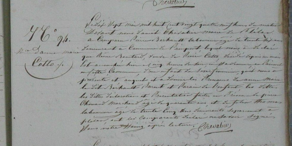Père : COTTO Pierre ( 1783 - 1824 )