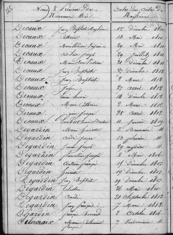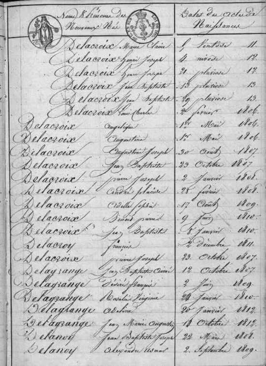 Père : DELACROIX Jean Baptiste ( 1783 - > 1823 )