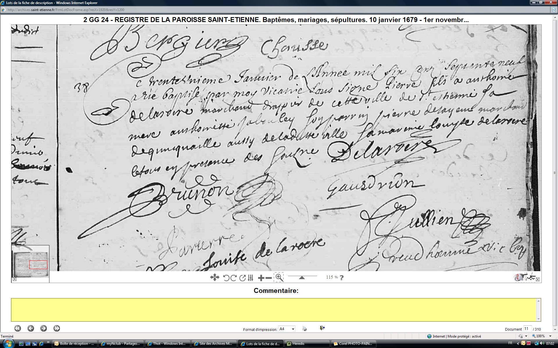 parrain Jaque DELAROERE fils au sieur Anthoine DELAROERE, Marraine Catherine DELAROERE soeur au Sieur (peut-être des enfants d'un autre mariage)Décès : à Saint-Étienne 42100