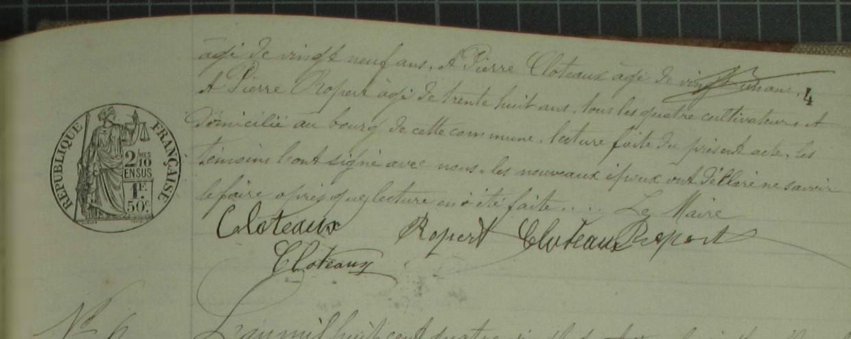 Union : CLOTEAUX Jeanne Marie ( 1862 - > 1894 )