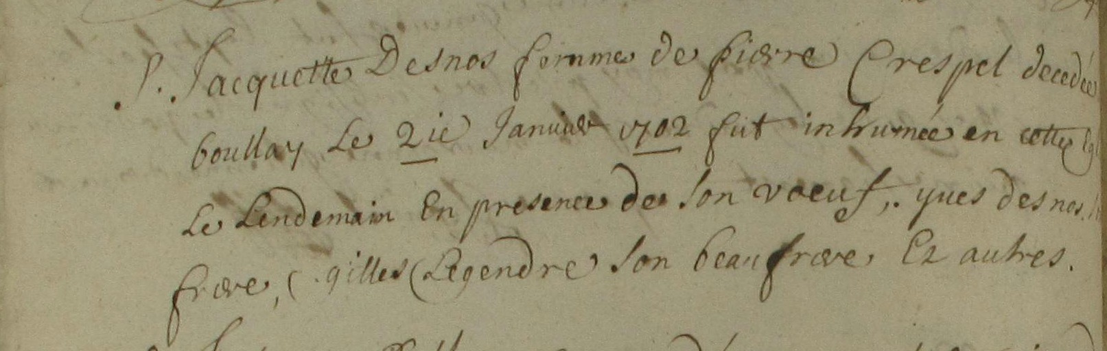 Inhumation : après 21 janvier 1702 à Guichen 35580 le boullay