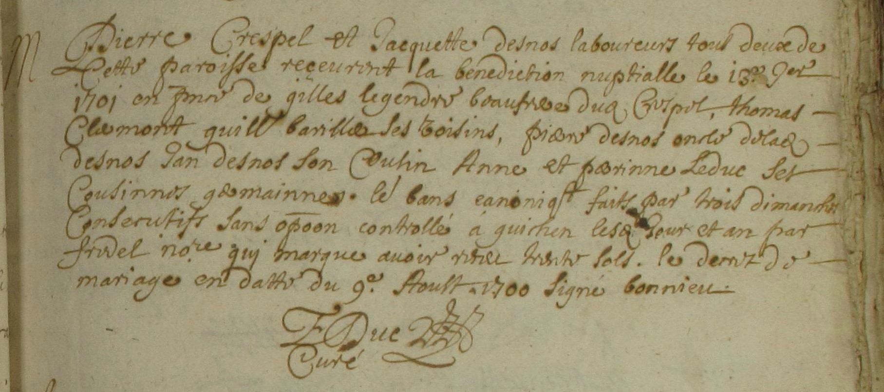 décret de mariage 9/8/1700