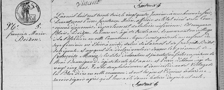 Père : DOIZON Blaise ( 1802 - 1860 )