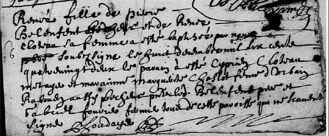 Mère : CLOTEAU Renée ( ~ 1657 - 1697 )