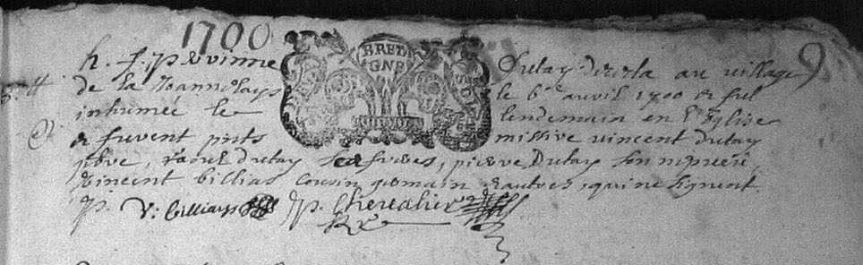 Décès : 6 avril 1700 à Goven 35580 La Jouannelays Inhumation : 7 avril 1700 à Goven 35580 l'église
