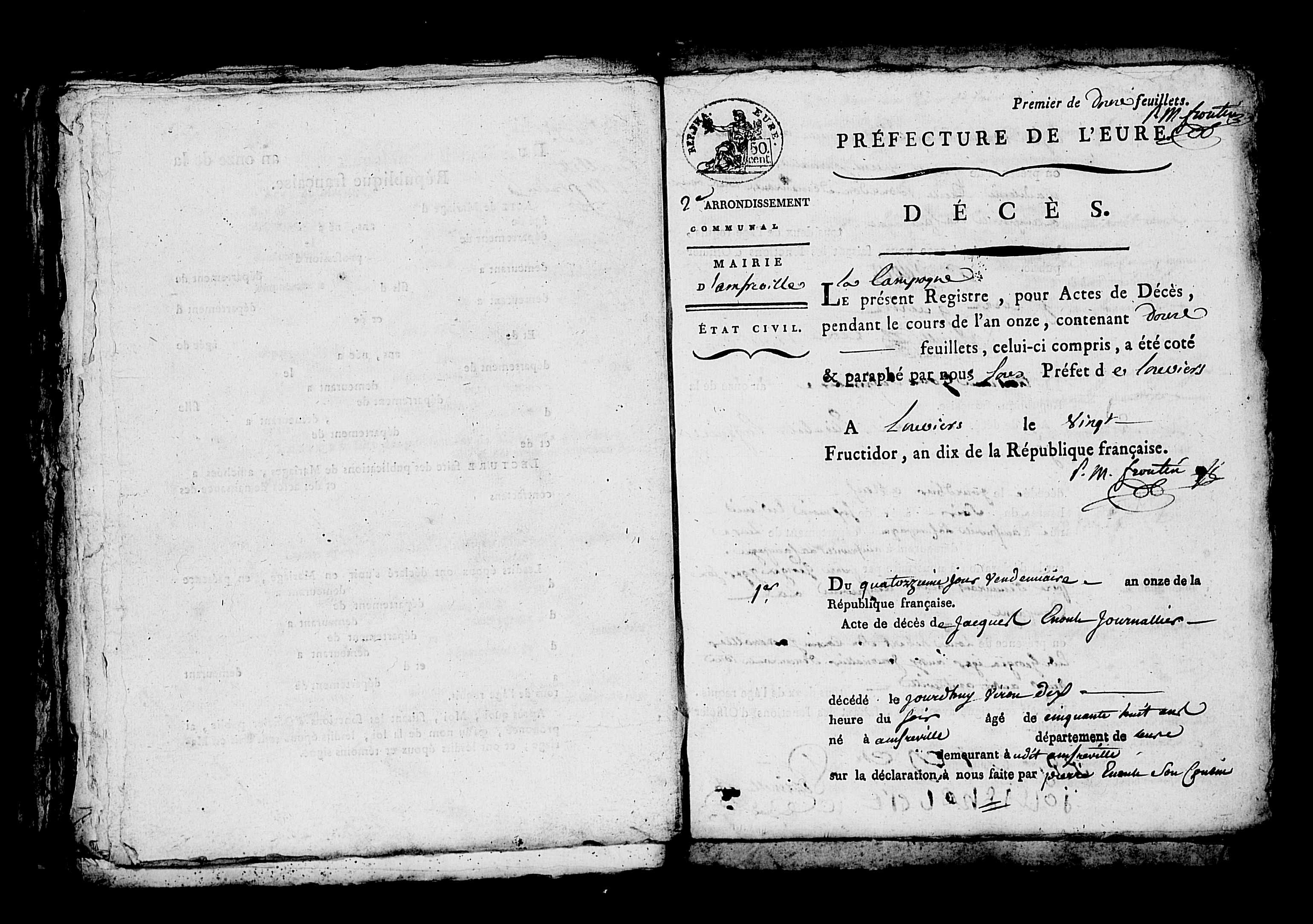 Naissance : calculée 1744 à Amfreville-La-Campagne 27370 Décès : 14 vendémiaire an XI à Amfreville-La-Campagne 27370