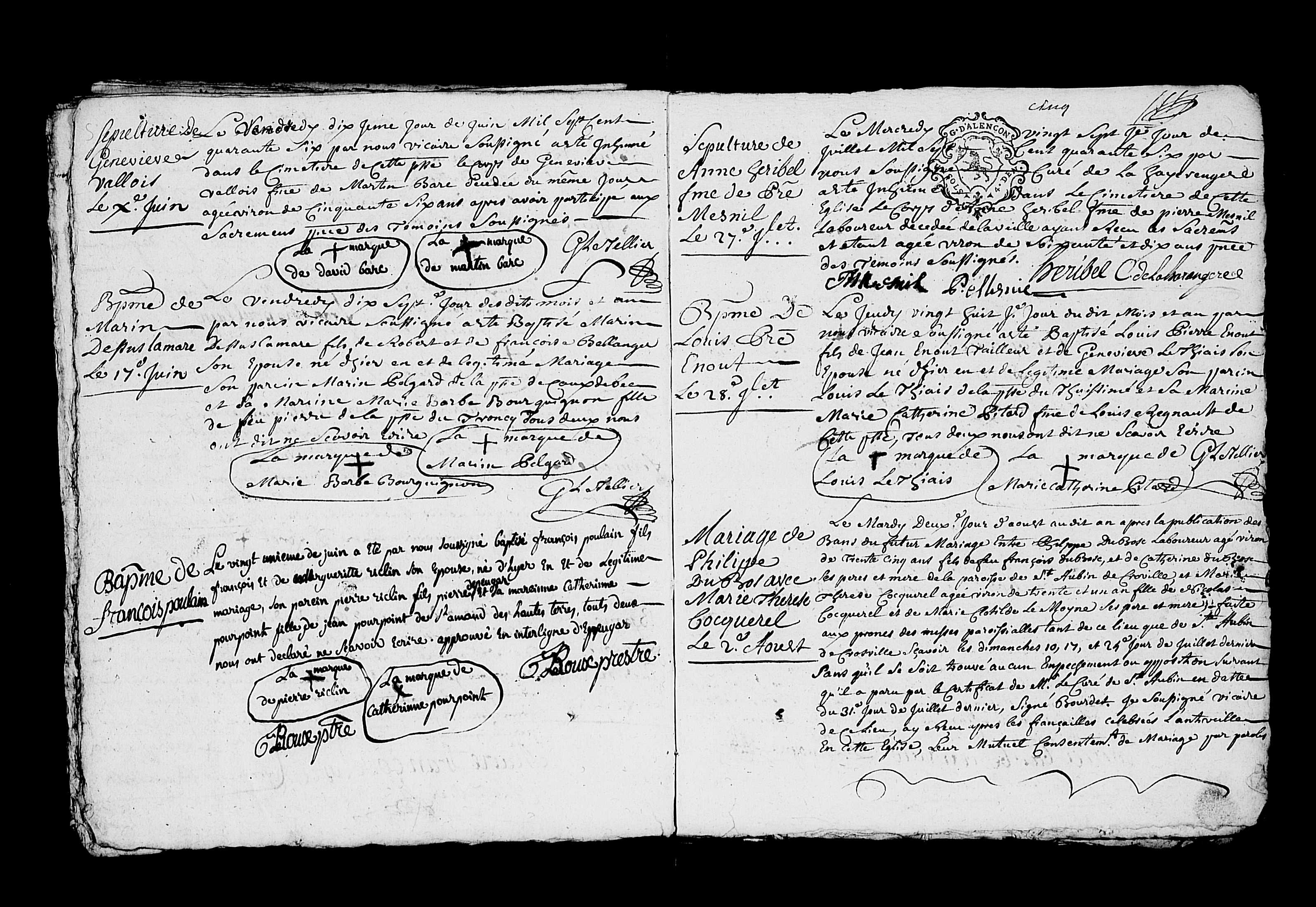 Naissance : calculée 1747 Inhumation : 7 septembre 1750 à Amfreville-La-Campagne 27370