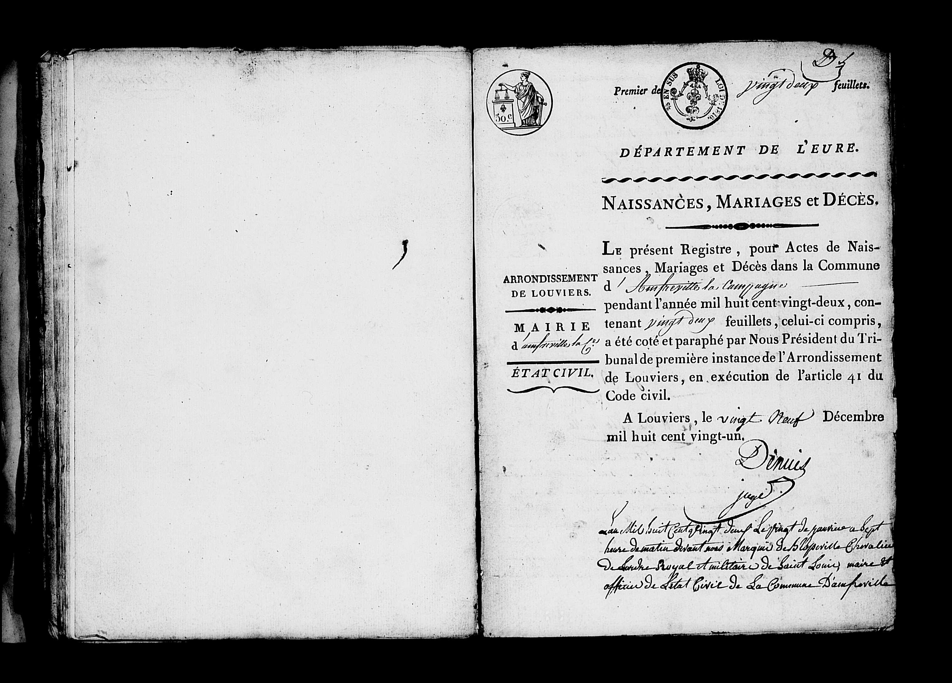 Décès : 20 janvier 1822 à Amfreville-La-Campagne 27370