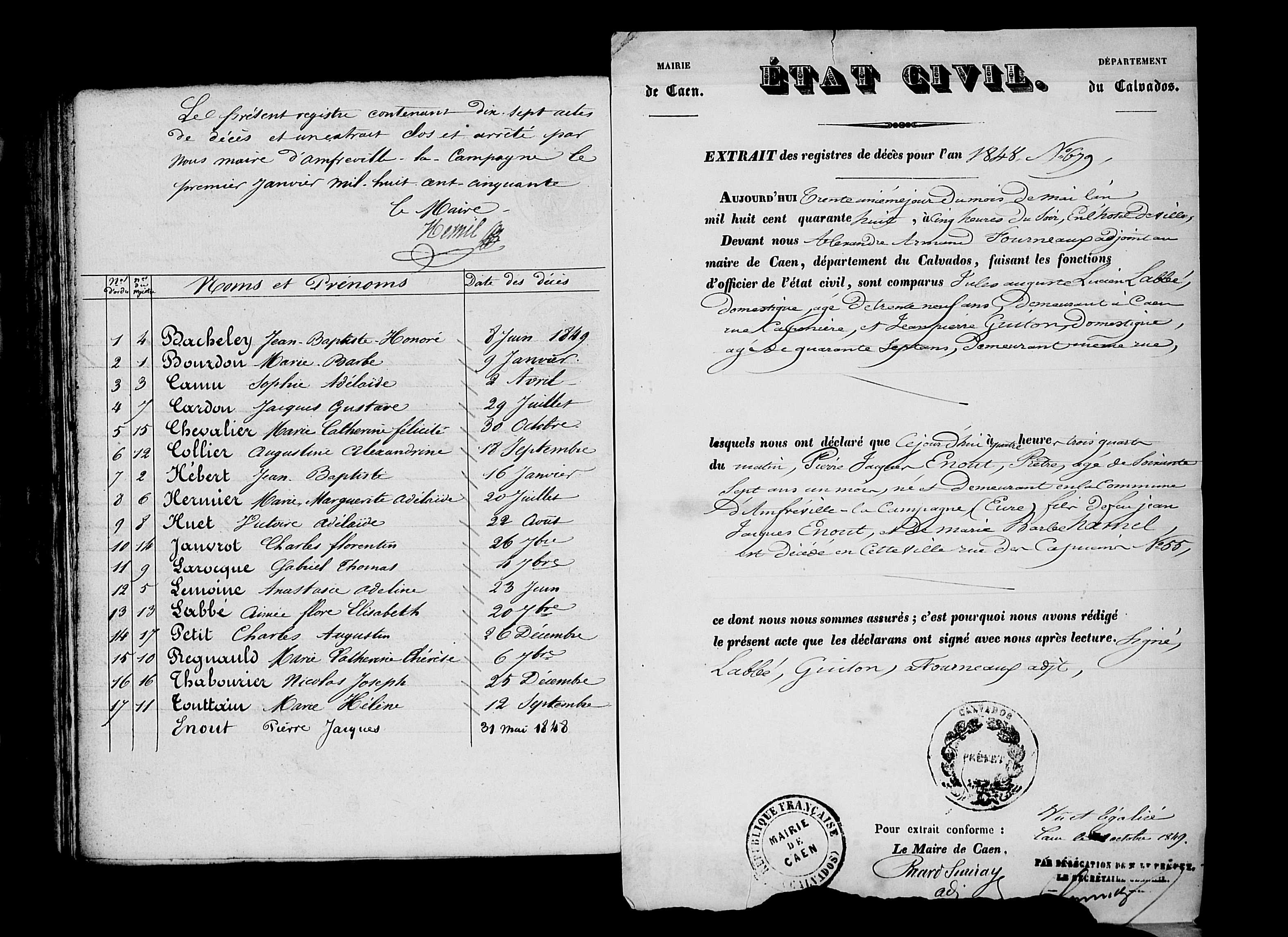 Décès : 31 mai 1848 à Caen 14000 55 rue des Capucins