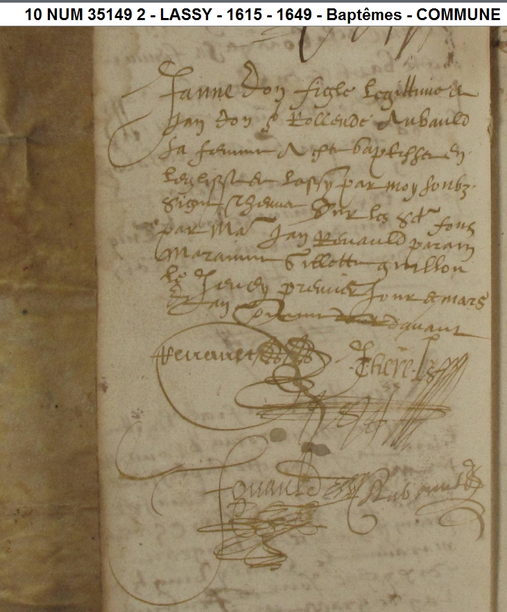Naissance : J 27 novembre 1577 à Lassy 35580 Décès : à Lassy 35580