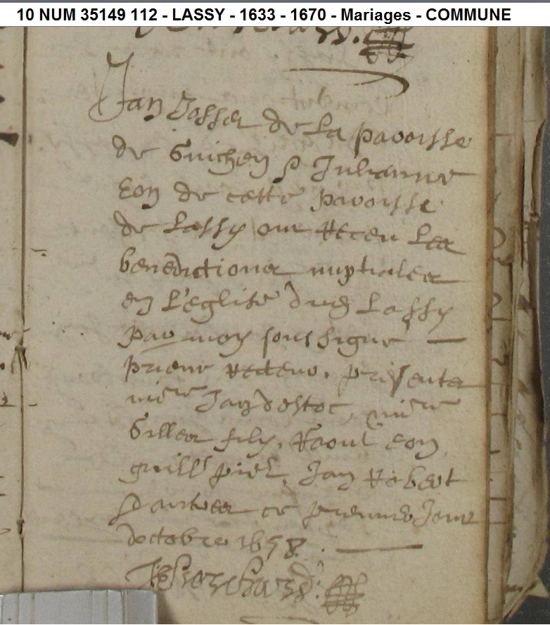 Mariage : 1er octobre 1658 à Lassy 35580