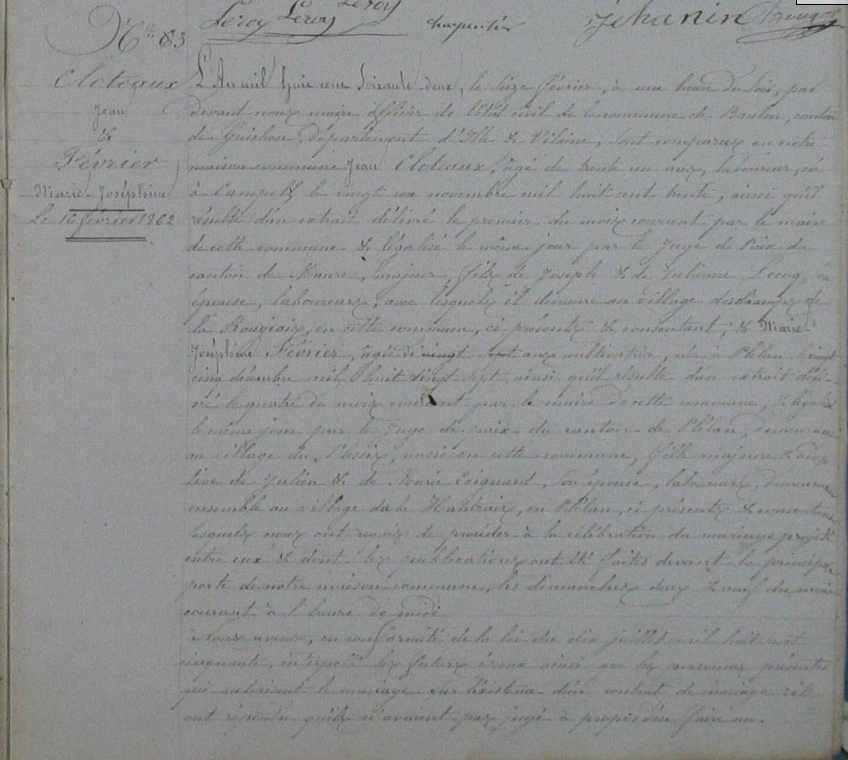 Mariage : 16 février 1862 à Baulon 35580