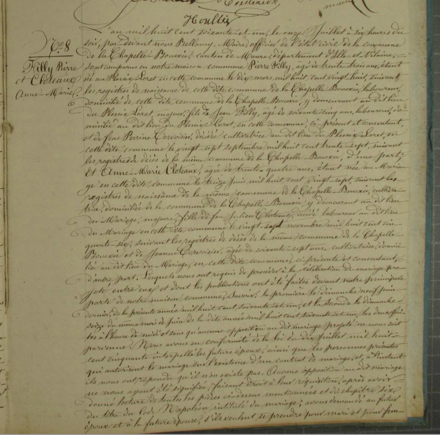 Mariage : 11 juillet 1861 à La Chapelle-Bouëxic 35330