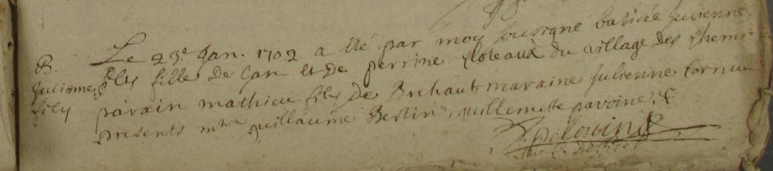 Mère : GAULTIER Perrine ( < 1693 - < 1731 )