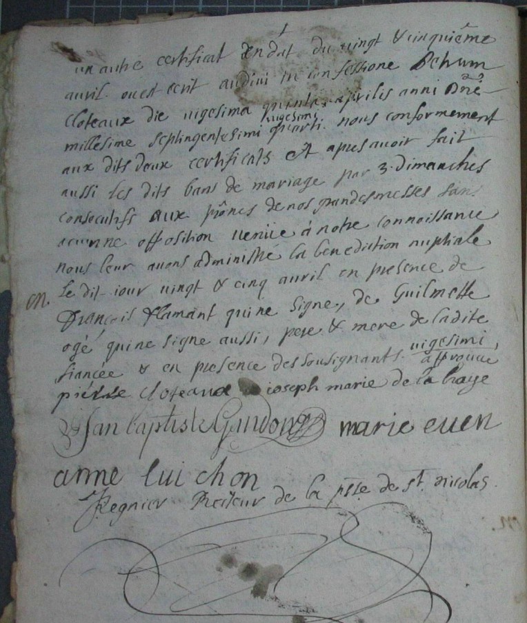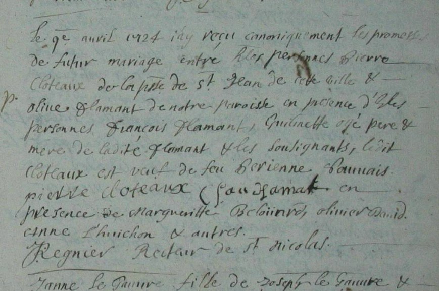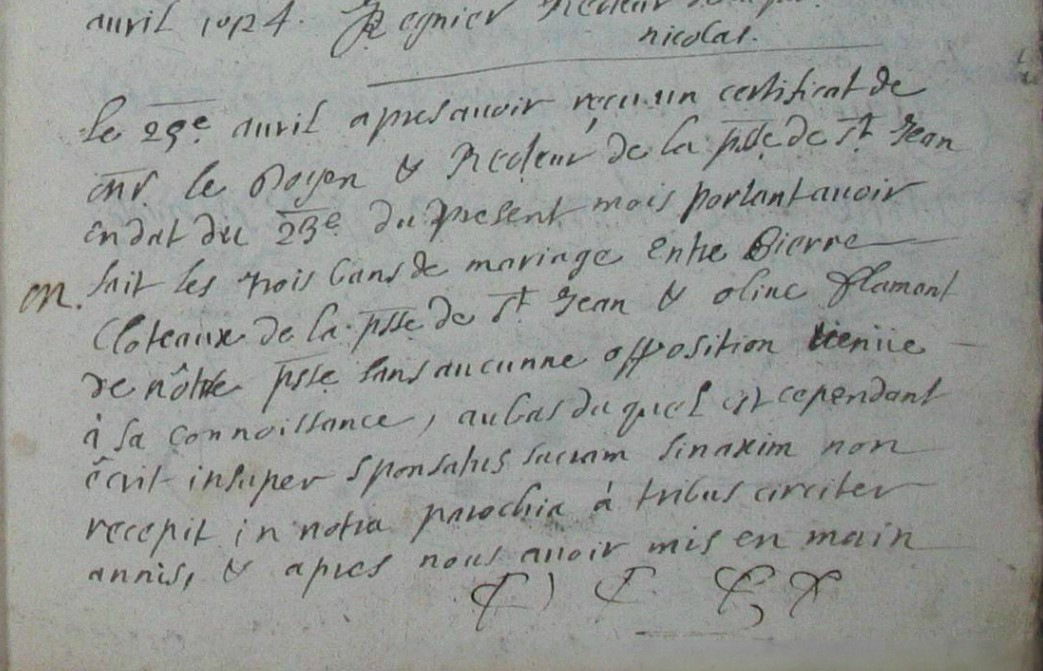 Mariage : 25 avril 1724 à Montfort-Sur-Meu 35160 Paroisse Saint Nicolas