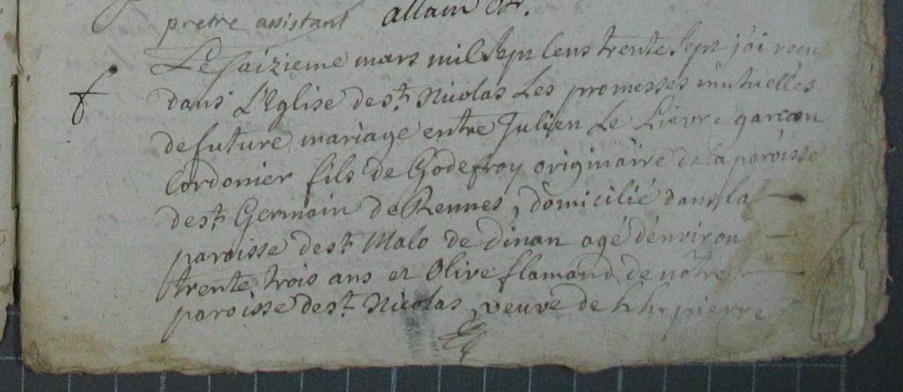 Naissance : vers 1707 à Montfort-Sur-Meu 35160 Saint Nicolas Décès : après 17 mars 1737 à Montfort-Sur-Meu 35160