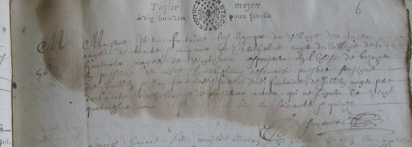 Témoin :FONTAINE Guillaume ( ~ 1649 - 1694 )