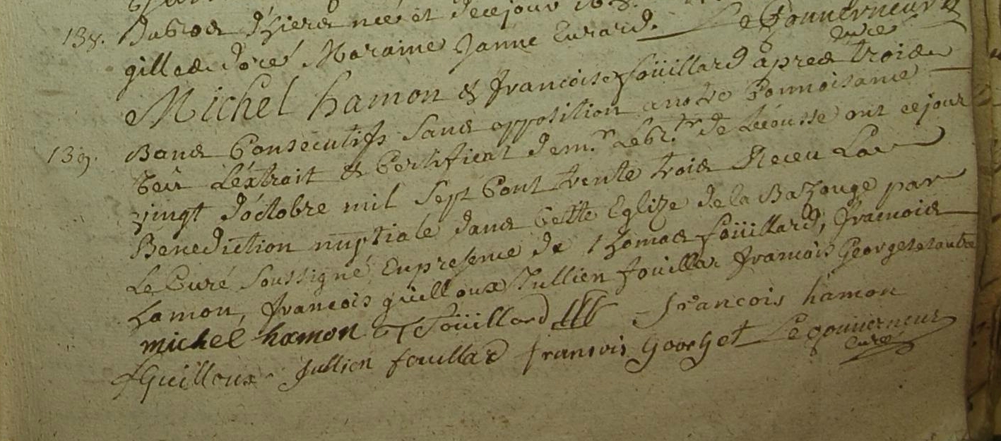 Mariage : 20 octobre 1733 à La Bazouge-Du-Désert 35420