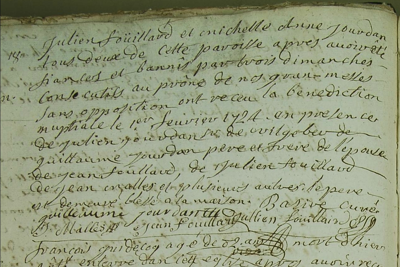 voir 108 Julien GUERIN de la paroisse de Landean et Françoise FOUILLARD 10/10/1724