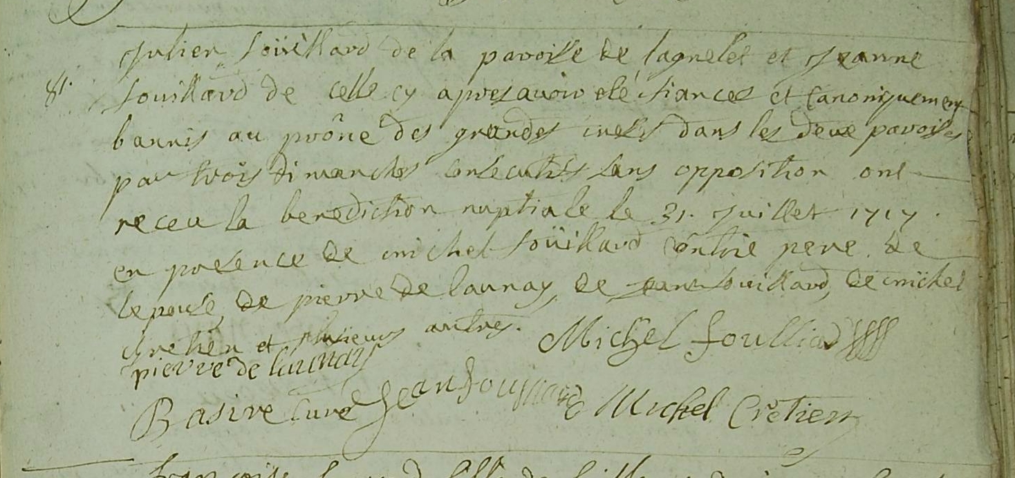 Mariage : 31 juillet 1717 à La Bazouge-Du-Désert 35420